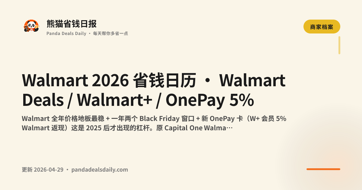 - OnePay 卡是 2025 后的新省钱杠杆 — Walmart+ 会员持卡 = 5% Walmart 返现,无年费。原 Capital One Walmart 卡已 2024 停
