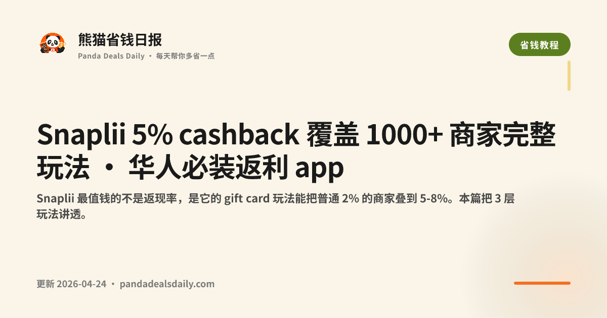 Snaplii 新用户注册 $10 bonus · 含 referral 联盟链接。返现率以 Snaplii 实时 app 内显示为准,本文数据更新于 2026-04-24。